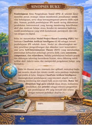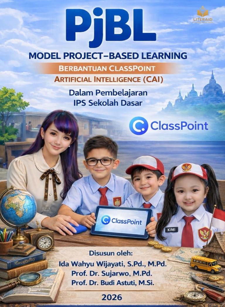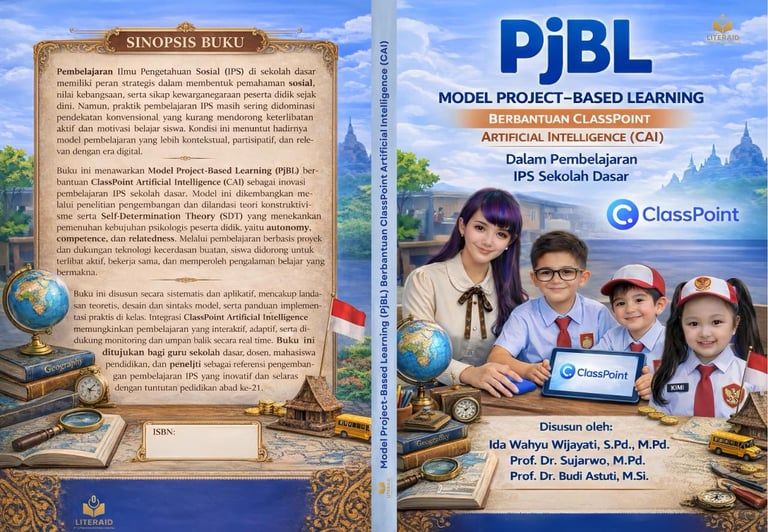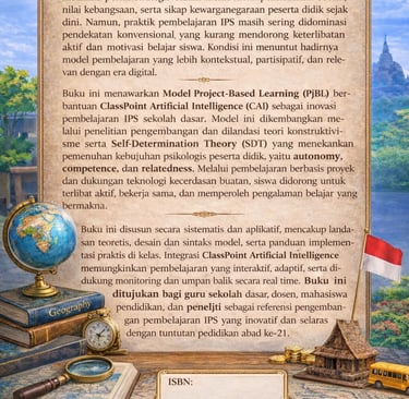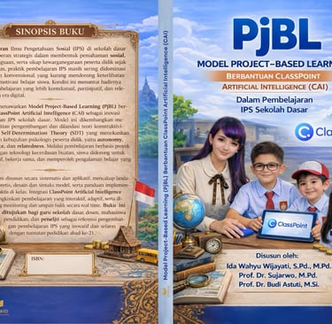 Buku model pembelajaran IPS sekolah dasar berbasis proyek dengan dukungan ClassPoint Artificial Intelligence untuk meningkatkan motivasi, keterlibatan, dan pengalaman belajar bermakna siswa.